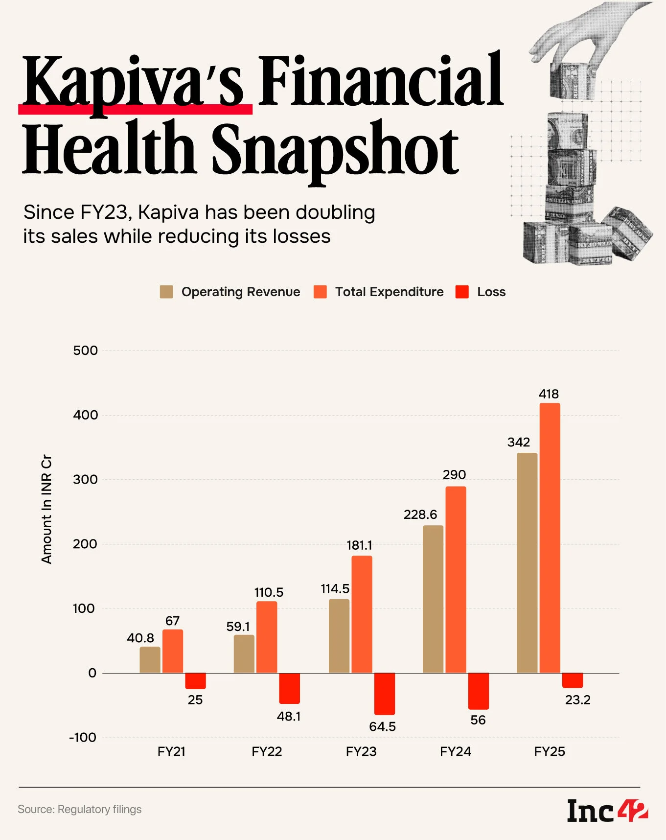 He launched Kapiva as a direct-to-consumer (D2C) ayurvedic brand in 2016 and rolled out the first batch of products a year later. Nine years on, the startup offers SKUs across wellness, diabetes care, heart health, and gym nutrition. The company did business of INR 342 Cr in FY25 and aims at a revenue of INR 600 Cr this fiscal, with losses narrowing to single digits.